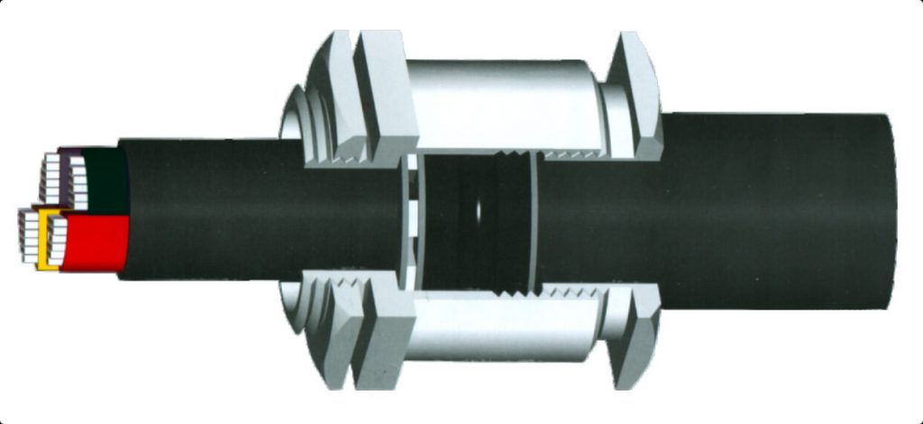 e) Push the cable through item 2 and screw the item 5 into item 2. While doing so, the grooved rubber ring will contract in a radial direction and will grip the outer sheath of the cable.